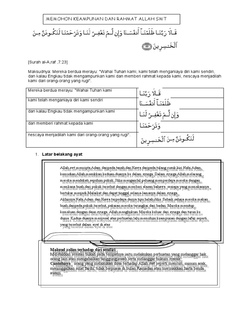 We have wronged ourselves, if you forgive us not and have not mercy onus, then certainly we are among losers.'. 23) in arabic and english text, may be useful. The narrative sheds light on the following significant points: (keduanya berkata, ya tuhan kami, kami telah menganiaya diri kami sendiri) oleh sebab perbuatan maksiat kami berdua (dan jika engkau tidak mengampuni kami dan membe. 33% menganggap dokumen ini bermanfaat, tandai dokumen ini sebagai bermanfaat.