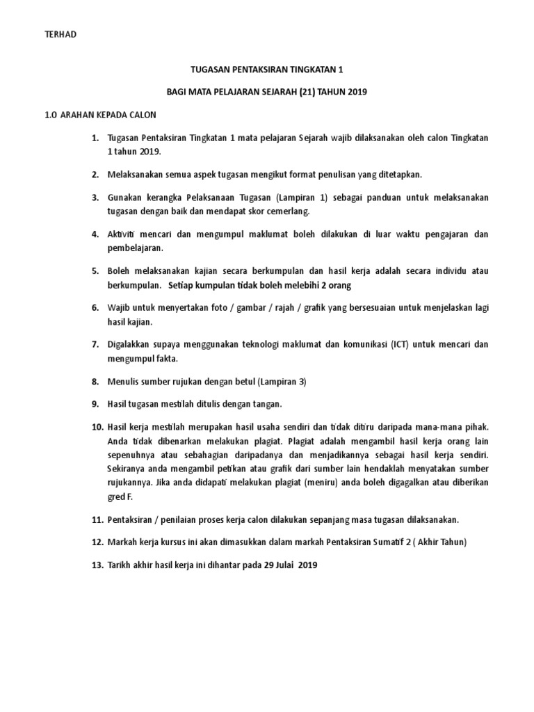 Contoh Kerja Kursus Sejarah Tingkatan 1 2019 - Kerja Kursus Sejarah Tingkatan 2 2018 Contoh Soalan Kajian Kes Sejarah Tingkatan 2 Selangor G Penulisan Dan Penghasilan Tugasan Ini Hendaklah Dilaksanakan Di Sekolah : Terhad tugasan pentaksiran tingkatan 1 bagi mata pelajaran sejarah (21) tahun 2019 1.0 arahan kepada calon 1.